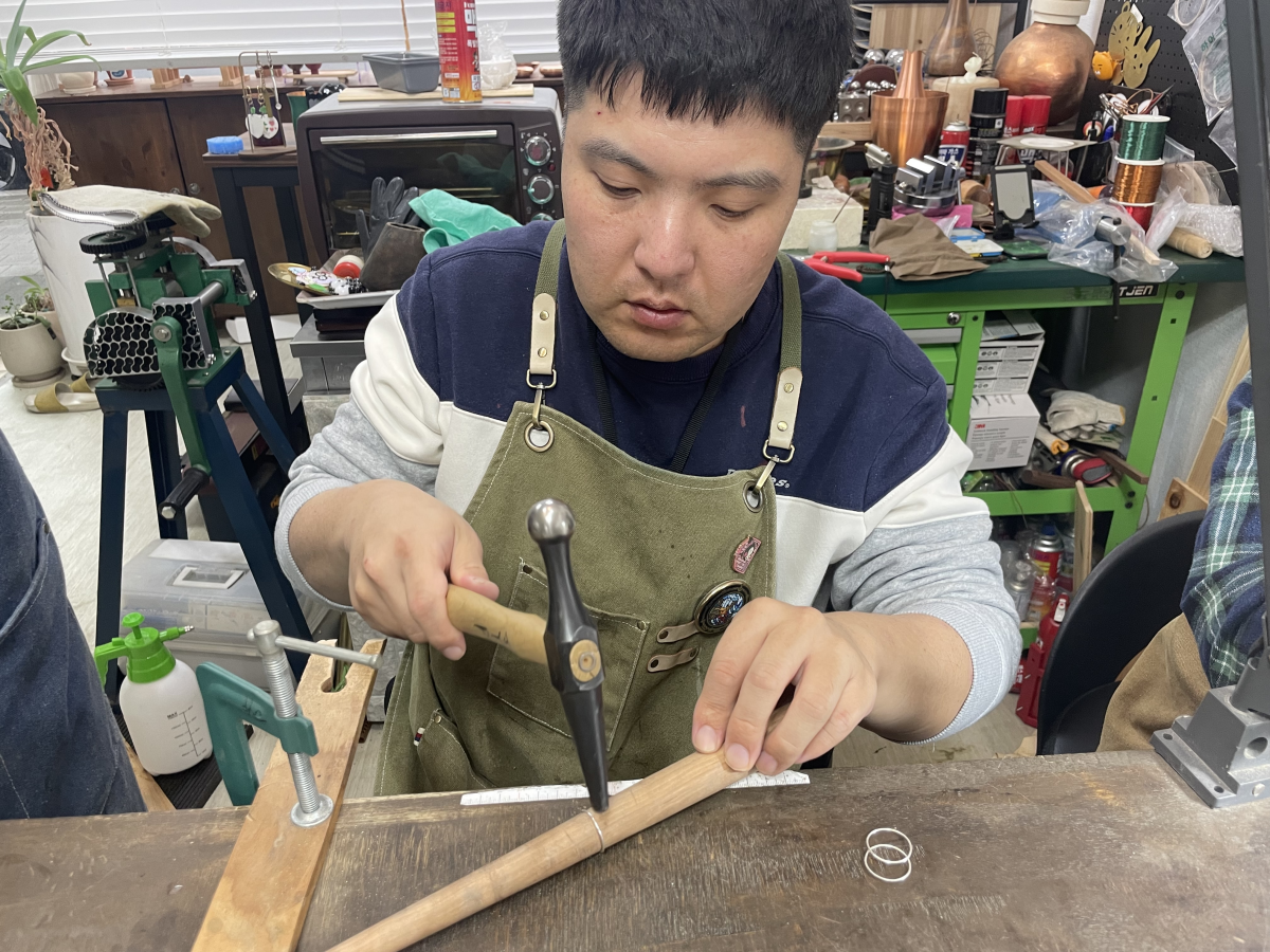 각자가 원하는 사이즈의 링을 두드리고 깍아서 마음에 드는 링을 만들면서 성취감 또한 맛보는 의미있는 시간이 되었습니다.
